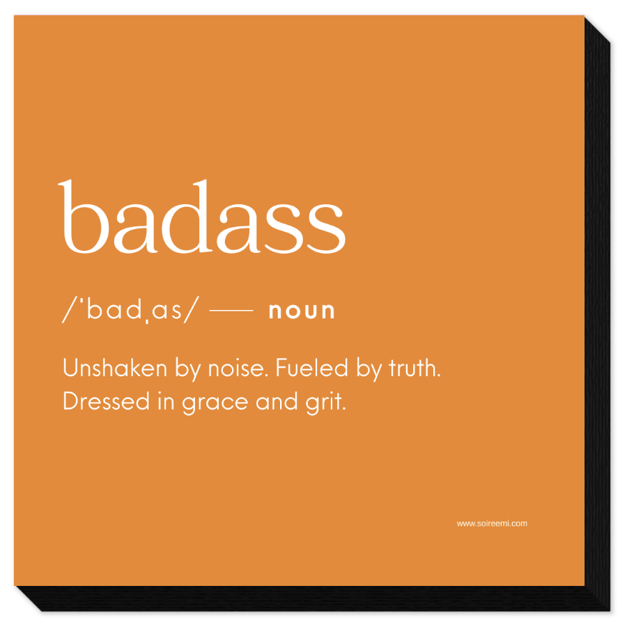 A 5×5 mounted art piece featuring Badass, designed to inspire confidence and bold self expression.