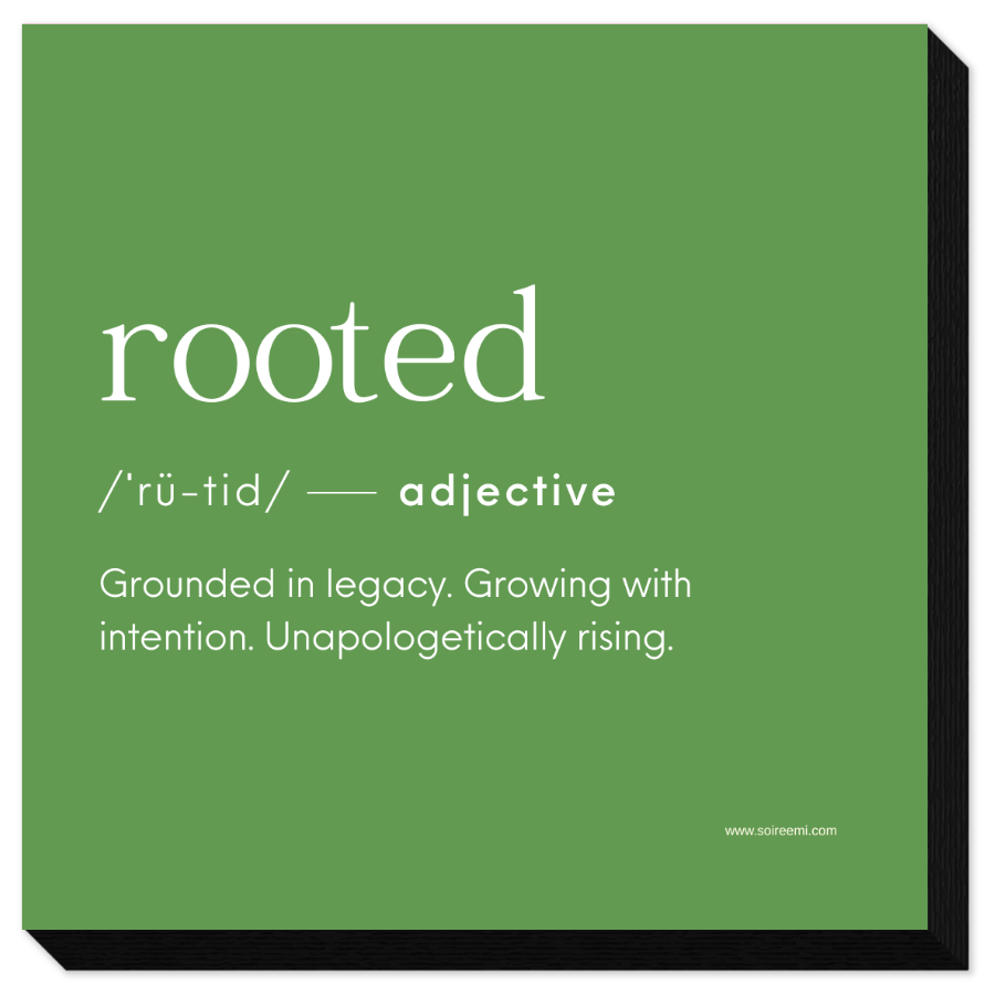 A 5×5 mounted art piece featuring Rooted, created to honor legacy, grounding, and inner strength.