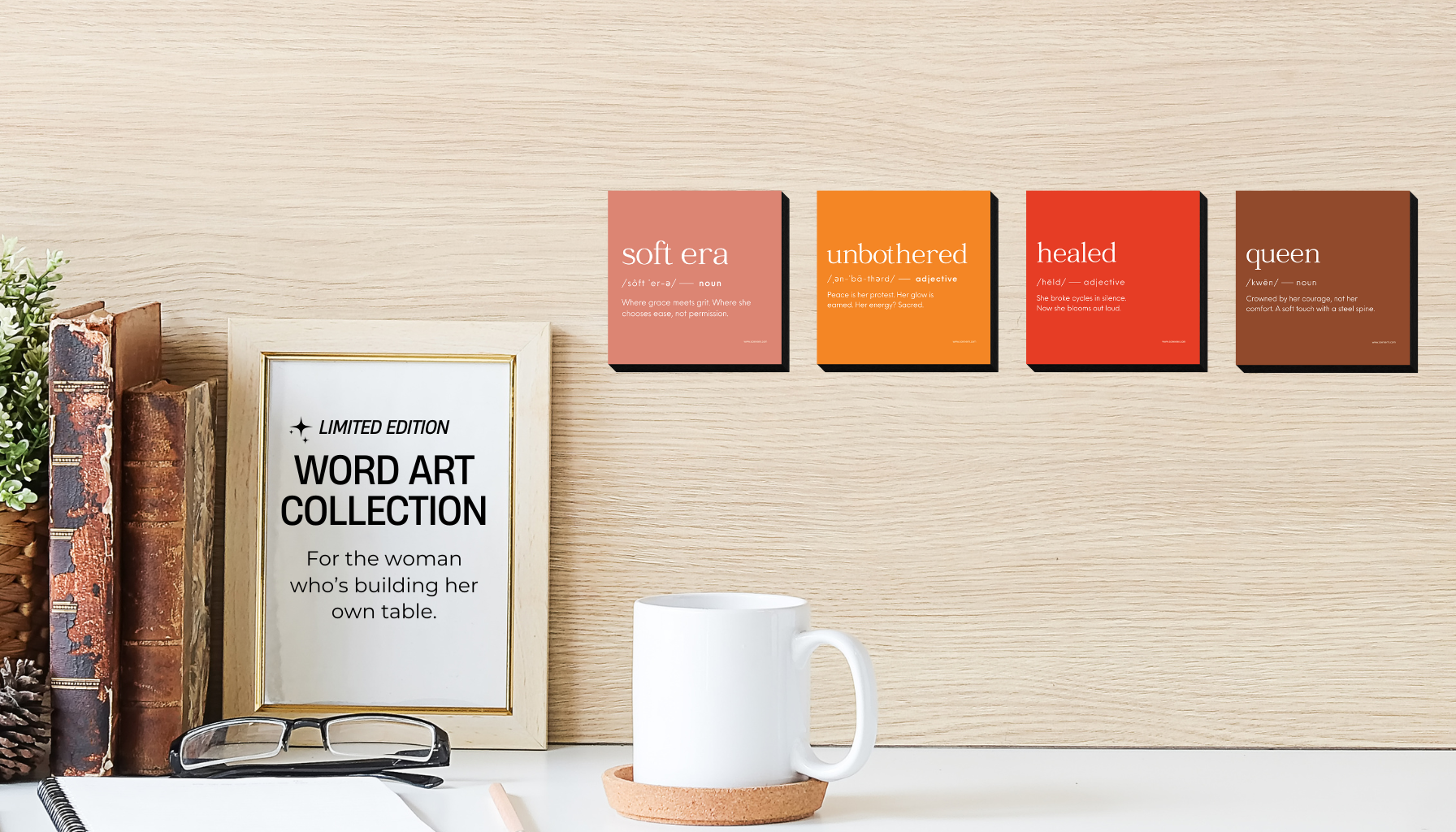 Small in size. Powerful in presence. Designed to sit on your desk, bookshelf, or nightstand, as a daily reminder of who you are and who you’re becoming.